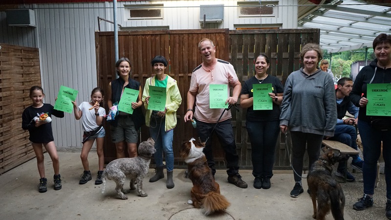 Nach der Obedience-Prüfung folgte mittags die Sachkundeprüfung, die von allen Teilnehmerinnen und Teilnehmern erfolgreich bestanden wurde.