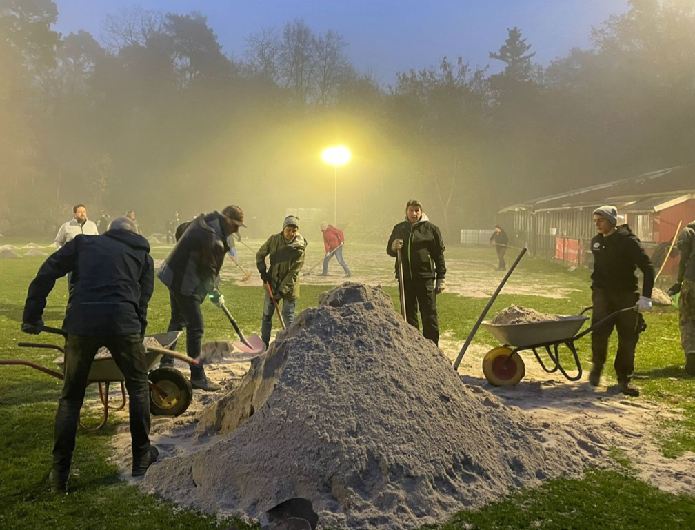 Um unseren Platz auch nur ansatzweise im Winter nutzbar zu halten war auch in diesem Jahr wieder eine Sandaktion nötig.