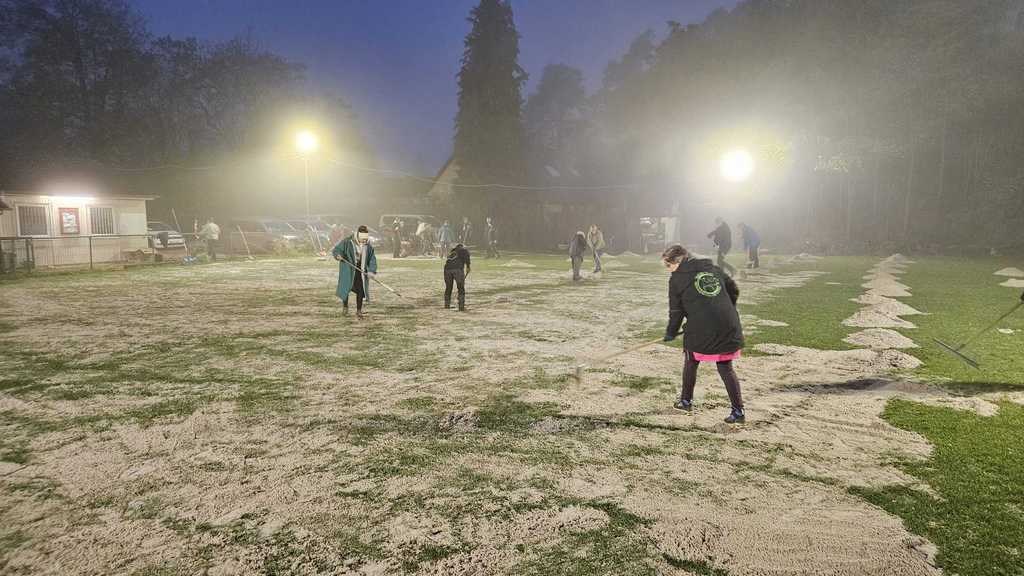 10 Tonnen Sand wurden hier in Rekordzeit verteilt. Der ein oder andere, der pünktlich erschienen ist, konnte nur verwundert die Augen reiben was allein in der ersten Viertelstunde geschafft
