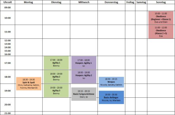 Hinzu kommen zwei NADAC Gruppen, die Basis-Anfänger Gruppe ersetzt die bisherige Junghundegruppe. Diese wird deutlich kleiner werden um jedes Team gezielt förndern zu können.